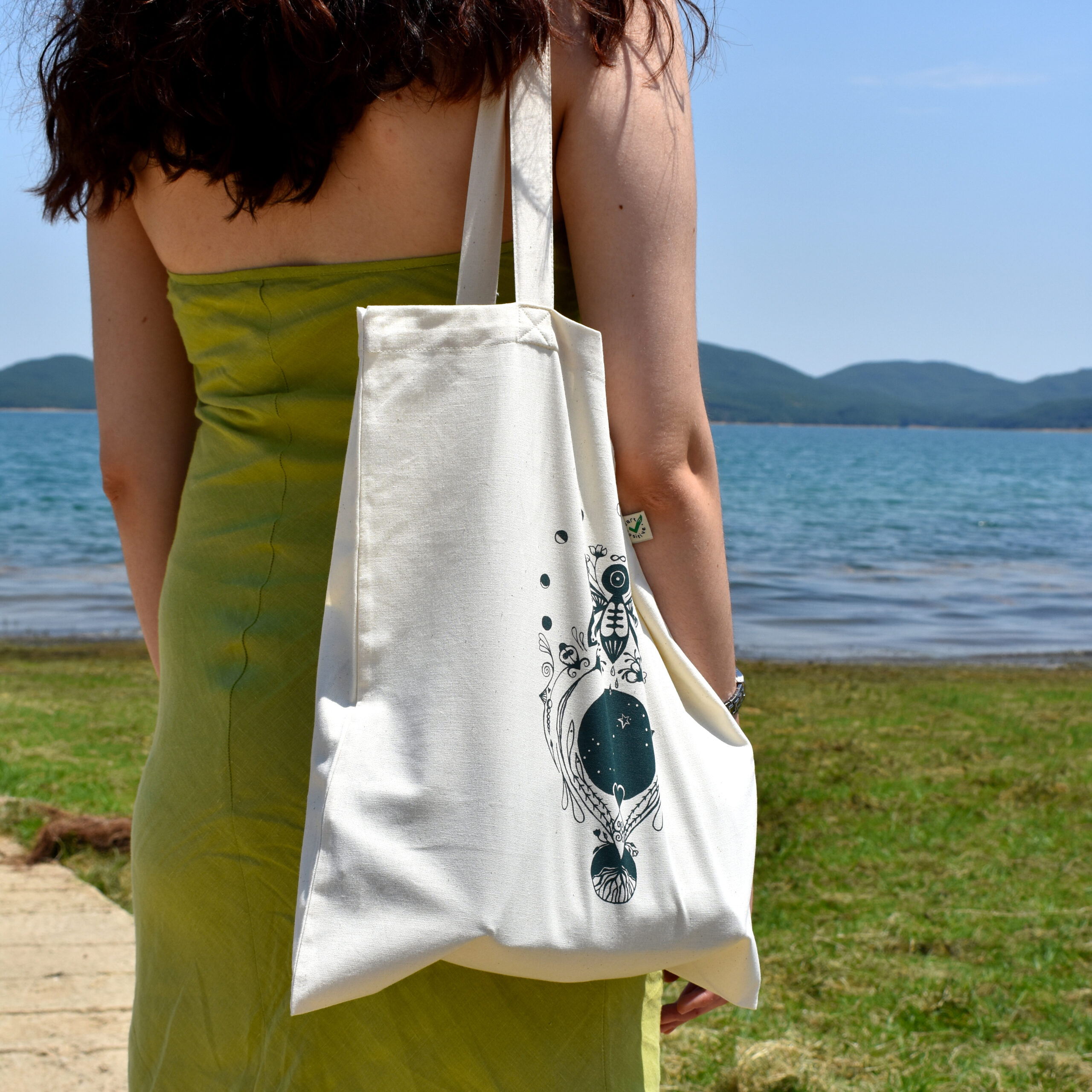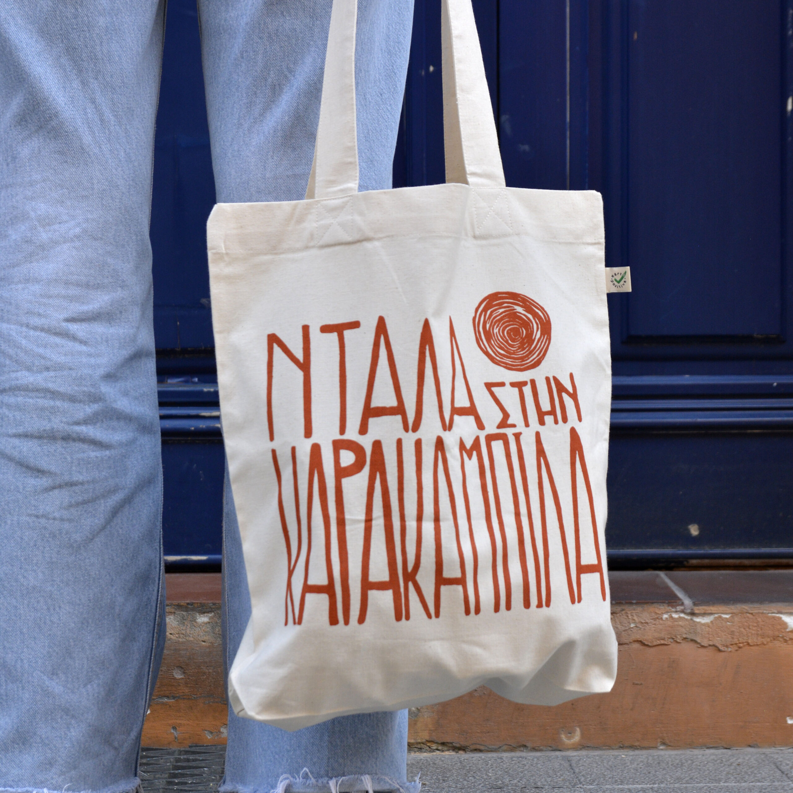 - Μεταξοτυπία/ 1 χρώμα / με μελάνια νερού σε tote bag 170gr από 100% οργανικό βαμβάκι.