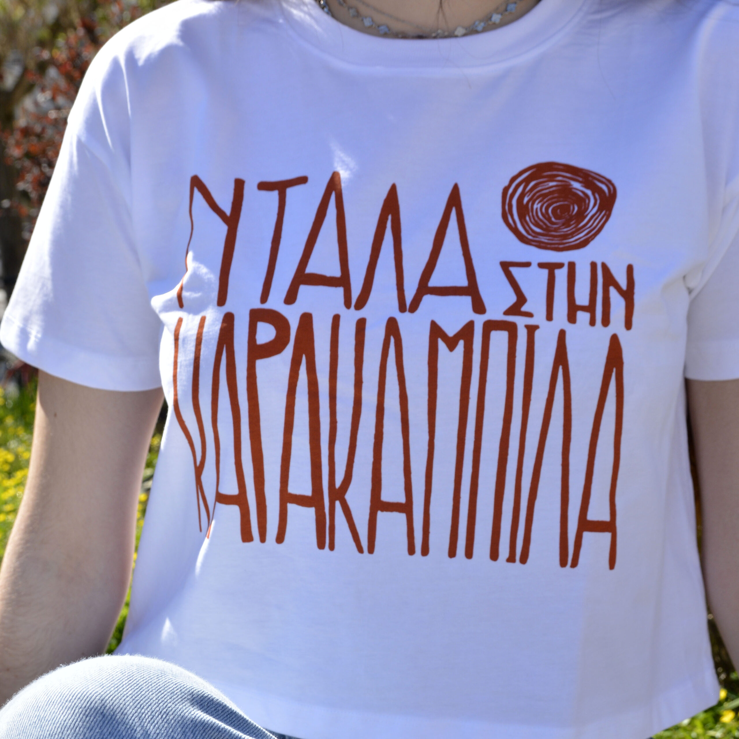 Η φράση “ΝΤΑΛΑ ΣΤΗΝ ΚΑΡΑΚΑΜΠΙΛΑ” αντηχεί στους δρόμους της Καρδίτσας και της ευρύτερης περιοχής κάθε καλοκαίρι και είναι περισσότερο ένα καθολικό βίωμα παρά μια απλή φράση. Τα γράμματα σχεδιάστηκαν στο χέρι, έγιναν χαρακτικό σε linoleum και τυπώθηκαν επίσης στο χέρι. Τυπώθηκε με φροντίδα και μεταξοτυπία από το εργαστήρι μεταξοτυπίας Huck στην Καρδίτσα.